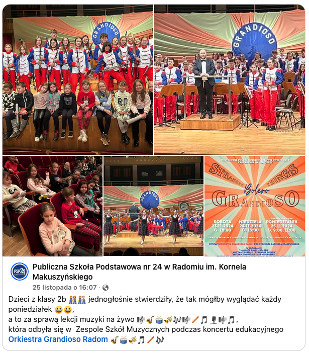 W poniedziałek 25 listopada 2024 odbyły się ponadto dwa koncerty edukacyjne dla szkół.