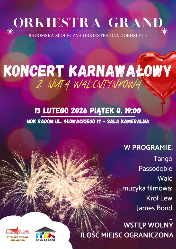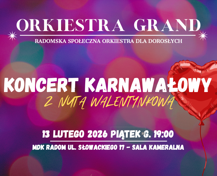 Zapraszamy na wyjątkowy Koncert Karnawałowy z nutą walentynkową w wykonaniu Orkiestry GRAND – pełen energii, humoru i muzycznych niespodzianek!